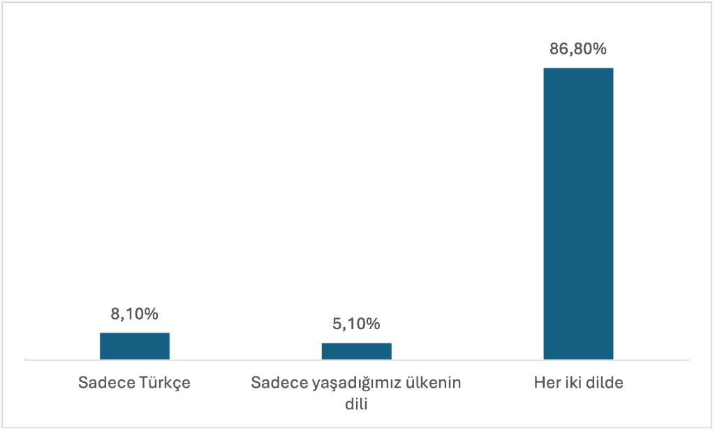 Araştırma bu yeni profilin en belirgin unsurlarından biri çift dillilik olduğunu tespit ediyor. Katılımcıların yüzde 54,2’si hem Türkçeye hem de yaşadıkları ülkenin diline eşit düzeyde hâkim olduğunu ifade ediyor. Daha da çarpıcı olan ise gençlerin yüzde 86,8’inin teşkilat çalışmalarının iki dilde birden yürütülmesini istemesi.