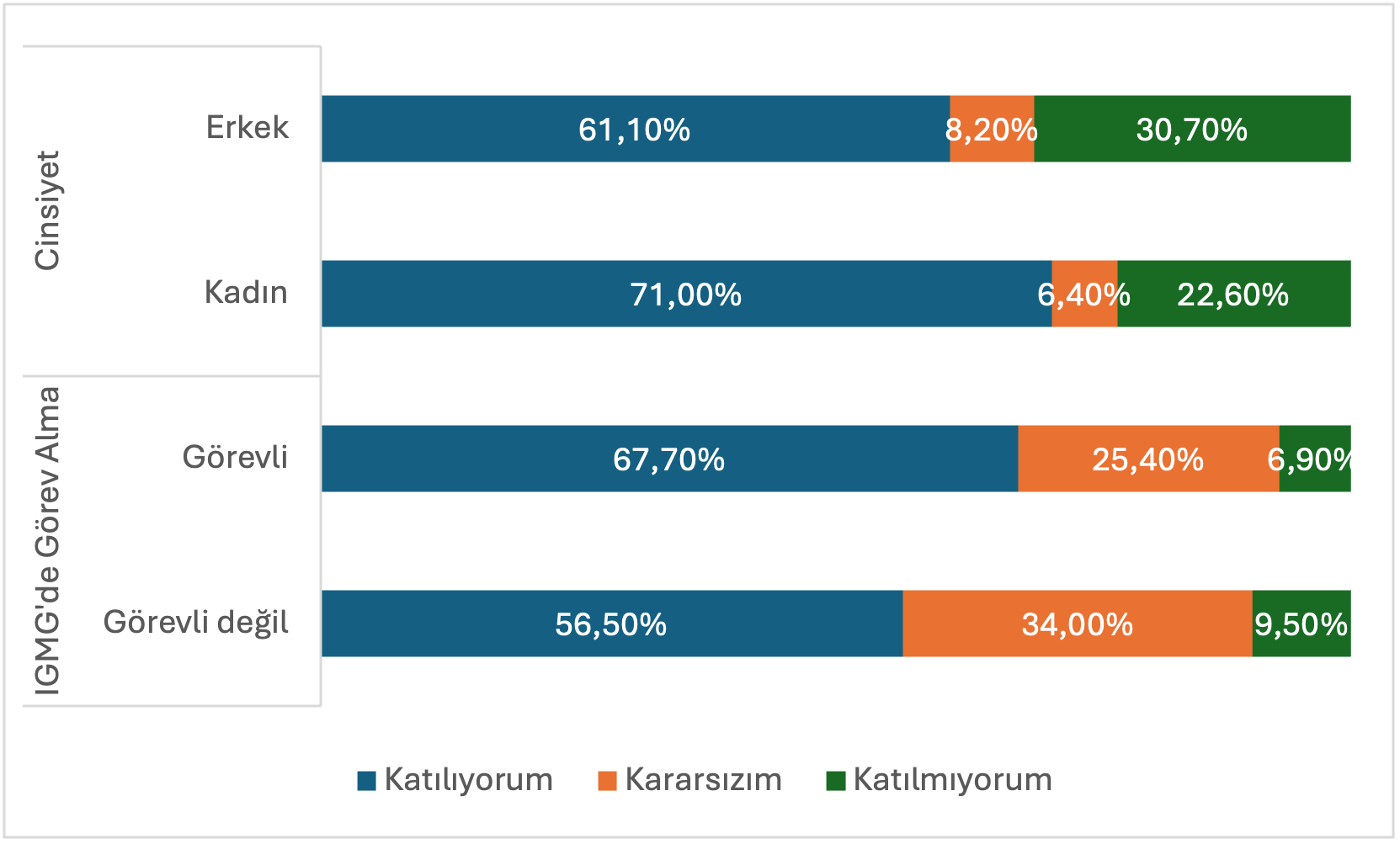 Grafik: Cinsiyete ve IGMG Teşkilatlarında görevli olma durumuna göre “Yaşadığım ülkeye kendi alanımda katkı sağlamak isterim” ifadesi